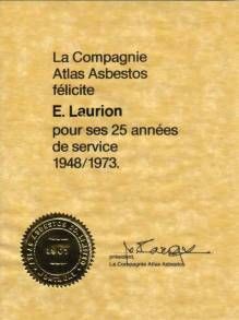 Ironie du sort, Euclide Laurion reçoit un certificat pour ses 25 ans de service chez Atlas Asbestos. Cette reconnaissance ne lui redonne pas la santé…..